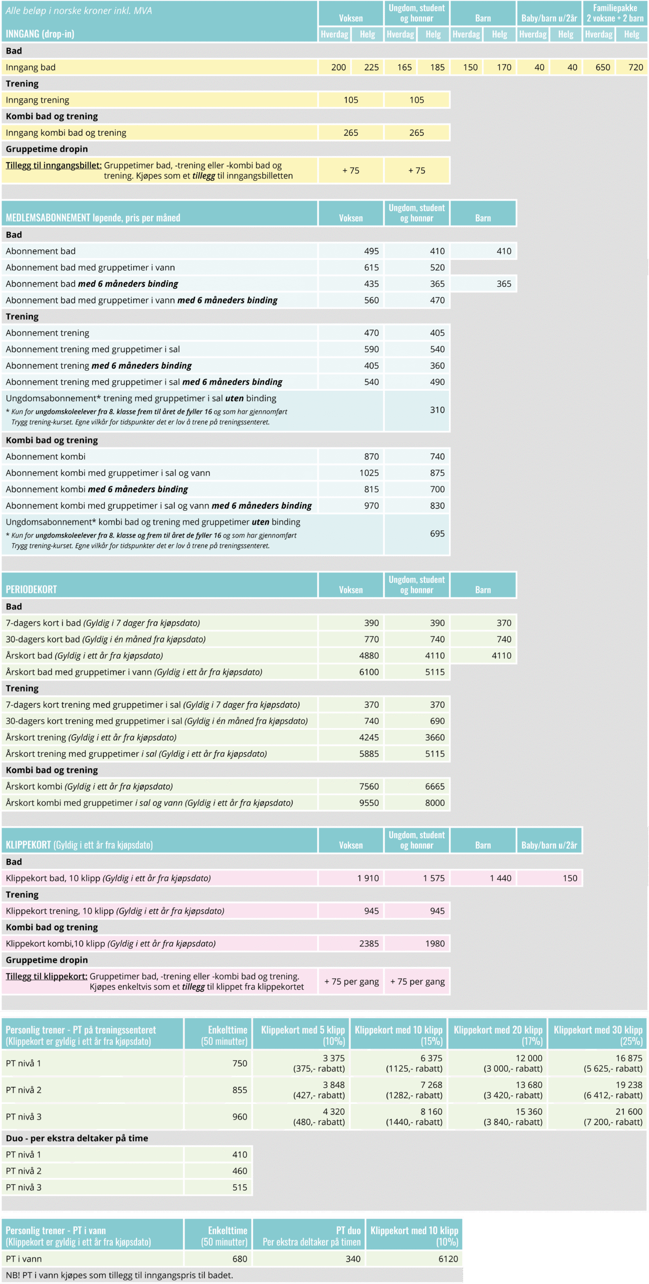 BARN (kun tilgang i badet): fra og med fylte 2 år frem til året barnet fyller 16 år